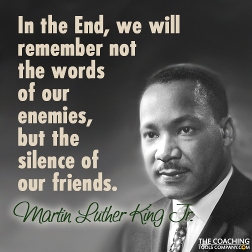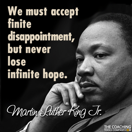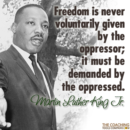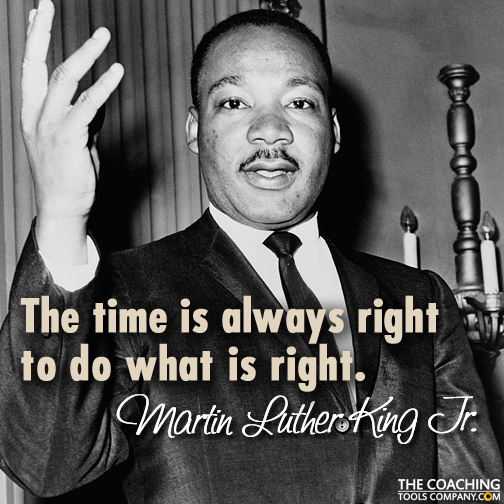 Home » Coaching Blog » Coaching Tools & Resources » Coaching Quotes » 33 Inspiring Martin Luther King Jr. Quotes! 33 Inspiring Martin Luther King Jr. Quotes! Last Updated: February 12, 2025 Reading Time: 5 min 30 sec ShareTweet3Share37Pin256296 SharesOriginally, for Martin Luther King day, we thought we'd create a quote graphic to share—but we didn't expect to have such a hard time choosing which one! So we created this article instead with 33 Martin Luther King Quotes, and 5 quote graphics that cover a wide range of topics. Jump straight to the 33 Martin Luther King Quotes here >> More than just being outspoken about civil rights, love and non-violence, Martin Luther King Jr. was also very aware of the issues with Capitalism, how poverty affects us, blocks to societal change - and human nature. King also talked about civil disobedience (see quote below), and was inspired by Mahatma Gandhi's nonviolent activism. I submit that an individual who breaks a law that conscience tells him is unjust, and who willingly accepts the penalty of imprisonment in order to arouse the conscience of the community over its injustice, is in reality expressing the highest respect for law. Martin Luther King, Jr. So, along with this collection of quotes, I have pulled together with a brief "history" of Martin Luther King Jr. for people from around the globe who might not know much about him. This plan was slightly hampered because he achieved so much that it's hard to write something short that isn't just a list of facts and dates. I hope you'll forgive the "potted" history, and if you'd like to know more - I recommend you read a biography! Here's the compiled autobiography I have ordered about Martin Luther King Jr. And if anyone has a better book suggestion, let me know. A brief history of Martin Luther King Jr., American Baptist minister and Civil Rights Activist Born Martin King on January 15, 1929 in Atlanta, Georgia in the United States, Martin's father was the Reverend Martin Luther King, Sr. and his mother, Alberta Williams King. His mother was a talented organ player and choir leader, taking the young Martin Luther King Jr. to many churches to sing - which he was both good at and apparently enjoyed. Martin Luther King Jr. chose to add Luther to his name to honour the German Protestant religious reformer Martin Luther early on in his life. Martin Luther King's father was outspoken about racial segregation, and led a civil rights march in 1936 to protest discrimination aronund voting rights. He apparently instilled many of the values and ideals that Martin Luther King Jr. carried into his adult life. Growing up Martin Luther King Jr. experienced many racially-based humiliations. One that is believed to have influenced him heavily is being banned from being friends with a white boy by the friend's father when he was just 6 years old. This led to a discussion with his parents about slavery and African American history. For much of his life, King experienced depression. Apparently at age 12, believing he was responsible for his grandmother's death (she was just unresponsive) he jumped out of a second-story window, trying to commit suicide. When he heard she was OK, apparently he just got up and walked away. At high school he was an active debater and honed his public speaking skills. He graduated from college in 1948 with a BA in Sociology. His next step was to enrol in a Seminary, and he graduated with a Bachelors degree in Divinity in 1951. He married Coretta Scott in 1953 and had four children - two girls and two boys. EDITORS NOTE: It's reported that King restricted Coretta's role in the civil rights movement, believing she should be a housewife and mother. He was also said to have a number of extra-marital affairs. But—it isn't clear how much of this is invented or exaggerated by the FBI who were monitoring King and trying to discredit him. I would like to know more about King's attitude to women, but I'm not sure it's possible to get a clear picture decades later. I like to think that King wanted to ensure continuity of care for his children, and to protect his wife and children from death threats and the violence that threatened to (and often did) erupt during the marches and speeches. So, King Jr. became active in the civil rights movement early in his career, initially becoming known for his role in leading the 1955-56 boycott of the Montgomery public bus system, following the incident where Rosa Parks refused to give up her seat on a bus. During this time, tensions ran extremely high and not only was King's home bombed, but he was also arrested. A ruling was eventually made by the district court that ended segregation on all public buses in Montgomery and it was this that made King famous as a civil rights leader. King organized the famous March on Washington in 1963 where he gave his famous "I have a Dream" speech. He also helped to organize the 1965 Selma to Montgomery Marches which the 2014 movie "Selma" is based on. In 1964, he received the Nobel Peace Prize (becoming the youngest recipient) for combating racial inequality through nonviolent resistance, and mentioned Gandhi and his methods in his acceptance speech. Other interesting facts are that he supported the use of family planning and was awarded the Planned Parenthood Federation of America's Margaret Sanger Award in 1966. He also opposed the Vietnam War and made a speech in 1967 called, "Beyond Vietnam" that alienated many people at the time. He was sadly assassinated in Memphis Tennessee in April 1968. At the time he was planning a national occupation of Washington DC, which was to be named "The Poor People's Campaign". He was just 39 years old. After his death, Martin Luther King Jr. was awarded the Congressional Gold Medal and Presidential Medal of Freedom. Jimmy Carter said of awarding the Presidential Medal of Freedom: "Martin Luther King Jr. was the conscience of his generation. He gazed upon the great wall of segregatio